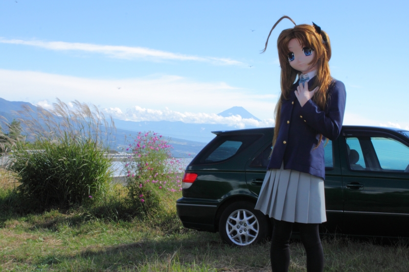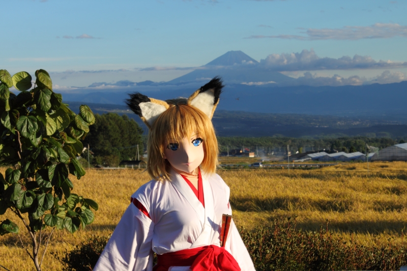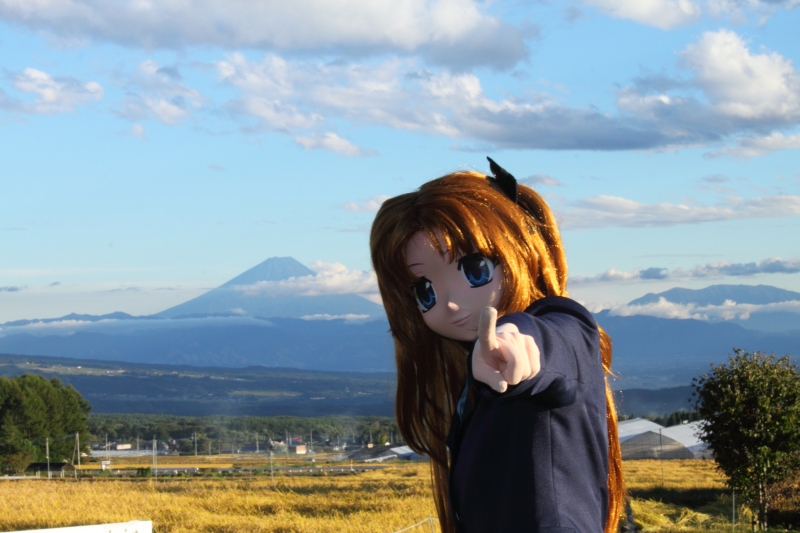 夕焼けにはちょっと早かった・・・でも、富士山バックにビシッと決めるあけりん。
