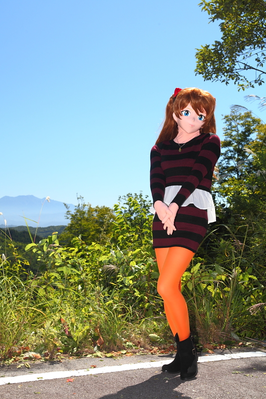 アスカの背後にある台形状の山は木曽御嶽山・標高3067m、日本で第14番目の高い山です。