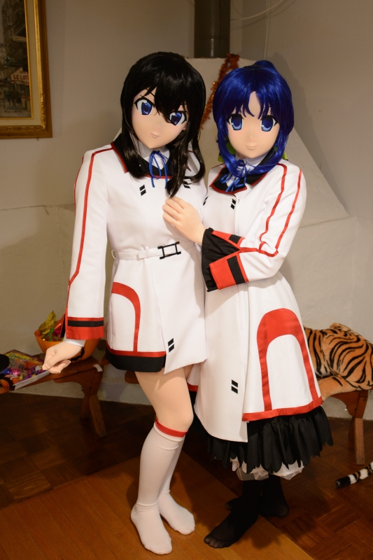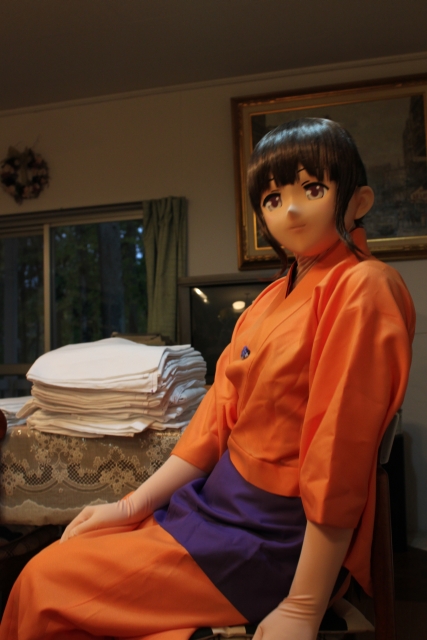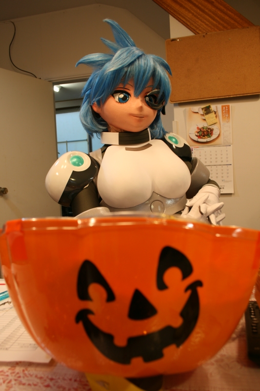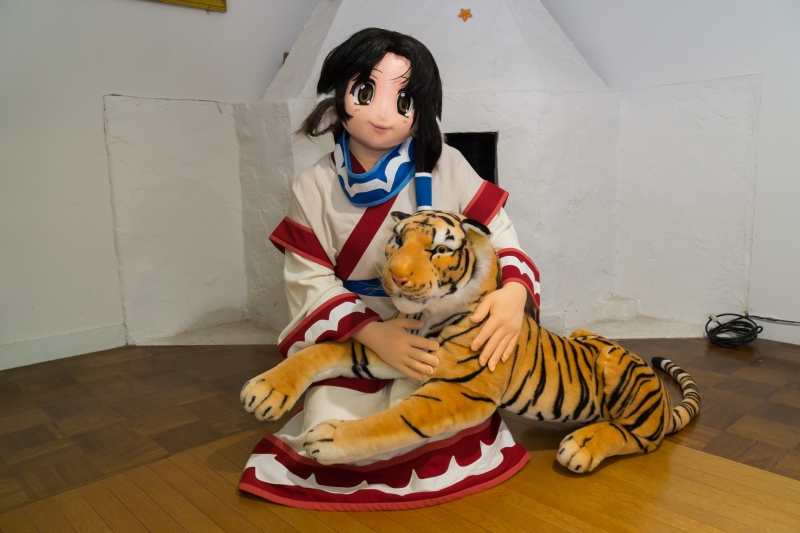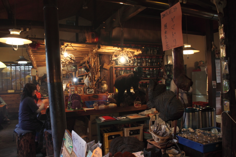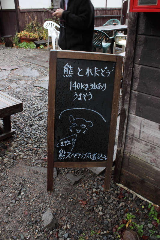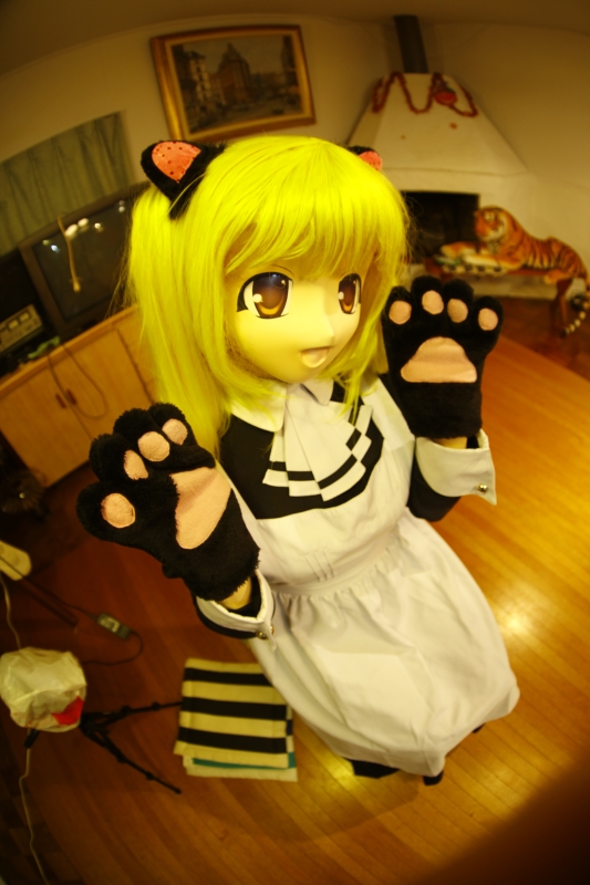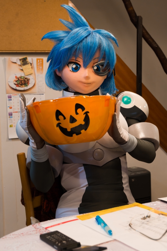 ![]() さてさて。 森のオフ会と銘打った貸別荘オフシリーズも第4回になりました。 元々私のオフ会の趣旨は、自動車1,2台で動ける少人数で、オフ期間中は全員一緒に遊ぼう! というものではあったのです(ほら、10人を超えると、オフ会の中で小さなグループが幾つか出来て。オフ中オフみたいになって、気が付けば同じオフに参加していながら、一言も話さなかった、なんてことあるかと)。 ただ、長年ここでオフ会開催を重ねるにつれて、色々お楽しみなネタが増えていきまして。 温泉が三カ所もあるし、肉が安くて美味しいトコもみつけて、旨い店も事欠かない。貸別荘のオーナー初め、地元の方々とも良い関係になってるし、いろんなバリエーションのロケ地もゴマンとある。 ちょっと、勿体ないかもなという気もしてきました。別に、ここを独り占めするつもりは毛頭無くて。少しずつ、回せる範囲で参加人数も増やしていきながら、皆さんにもこの辺の地理とかを覚えていってもらって、私以外の方々がここでオフ会を開いていったら、それはもっと良いことだしなあと思ったりしてるんです。 と、言うことで、今回サブタイトルで「おとな達のヒミツ基地」と銘打ちました。 日頃のうさをここでパーっとはらして、みんなで思いっきり遊ぼうよ! との気持ちを込めつつ、みんなで基地に集って(ある程度)、三々五々、気ままにやって行こう!と。 今回の参加者は、 TAKA、☆J&E☆、Dr.大木戸、カール4世、Lewin、NOCHI、笹原悠貴、さんかくは、ジョバンニ、すらん、つの、みんと、森羅、天、東鉄。 以上、15名です。 それと今回、ハロウィン時期でもあったので、ちょっとばかし、それっぽい小物も買っていったりしまして、少しそれっぽい雰囲気も覗かせつつ、オフレポをお送りします。 (^^) で、いきなりなんじゃこりゃ!? かと思いますが。 これ、オフ会場近くにある山のものを食べさせてくれる有名なお食事処でして。 オフ会初日、まず会場に着く前に、つのさん・東鉄さんらと一緒に、昼飯をこちらで食べました。 ↓ これですよ、これ(^^; 店主は、なにも山菜やキノコだけじゃなくて、クマや鹿も撃ってくるんですよねー。そして、店に出すと。 店内はマタギ小屋の雰囲気が出てます。 そして私がこの日オーダーしたのは、鹿の一口ステーキとキノコ汁。とっても美味しゅうございました。 そして、おなかを満たしたところで、貸別荘に到着。 貸別荘オーナー: 「やあ、TAKAさん、毎度ご苦労さん。これ、差し入れだから」 と言って、日本酒一升にでっかい葡萄を五房程もらっちゃいました。 折に触れて、サービスしてもらっちゃってるんですよね・・・十年来のつきあいで(^^; 貸別荘オーナー: 「ちょっと灯油が少なそうだから、買ってくるんで」 と、言ってオーナーは一度出て行きました・・・しめしめ。 ![]() 実のところ、オーナーには私らの着ぐるみについては、写真で見せたり、あるいはオフ会中に、裏の作業小屋から遠目にご覧になっていたことはあるのですが、直接に見せた機会はこれまで無くて。 灯油を買いに行って戻ってくる? これは、着替えるのにちょうど良い時間があるじゃん(^^) かくして、メイアが大慌てで、オフ会正式スタート前に「フライング」で登場してきました。 貸別荘オーナー: 「やあ、TAKAさん灯油買ってきたでな……やあ、TAKAさんどこにいるかね? おやおやおや!」 メイア: (あ、はじめまして)お辞儀ぺこり 貸別荘オーナー: 「TAKAさんはどうした?」 メイア: 手をかざしてキョロキョロ(うーん、どこいったかしら?) 貸別荘オーナー: 「おお、そっかそっか。そいじゃ、TAKAさんに言っといてくれや」 メイア: (了解!) (^^) やー、はじめて私の着ぐるみ姿を披露できました。 実はこのとき、オーナーさん、携帯電話をうっかり忘れて貸別荘に置いて行ってしまいまして。翌日、再び別荘の方に来たときは、ミズーとも引き合わせることが出来ました(w もう、オーナーさんも我々も、全く「着ぐるみ」を隠さない、オープンな関係になってしまいました。 ![]() 笹原さん撮影 ![]() つのさん撮影。 メイアが手にしてるのは、ハロウィン小物。この中に、スナック菓子の小袋が入ってます−。 で、メイアは、携帯(計算機代わり)に紙幣袋、参加者一覧と筆記具を前に、参加費徴収業務にいそしむのでありました(w まず、オフ会を始める前に当たって幹事のする最初の仕事でしょ?(w 全員が揃うのに、少し時間がありましたので。この間、メイア以外にもちょこちょこ着ぐるみさんがでましたが。 ![]() いかにも、旅館な1シーンっぽく。 ほどなく、晩ご飯&温泉に出て行き、会場はしばし、がらんどうに。 ![]() さて、温泉から戻ってきて、本格的にオフ会スタートです。 ![]() 東鉄さん撮影。 ![]() お菓子はむはむ。 笹原さん撮影。 ![]() 笹原さん撮影。 ![]() つのさん撮影。 ![]() つのさん撮影。 ![]() つのさん撮影。 ![]() ![]() つのさん撮影。 続々、着ぐるみさんが登場してきたところで、0時頃。初日集合写真撮