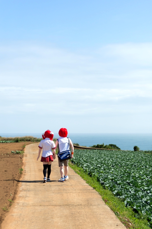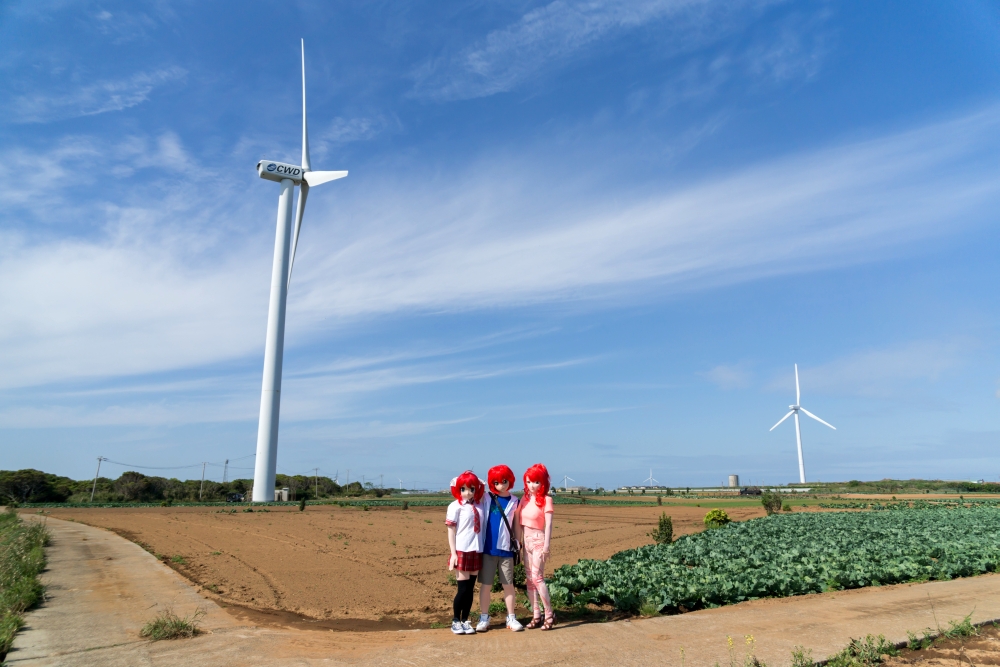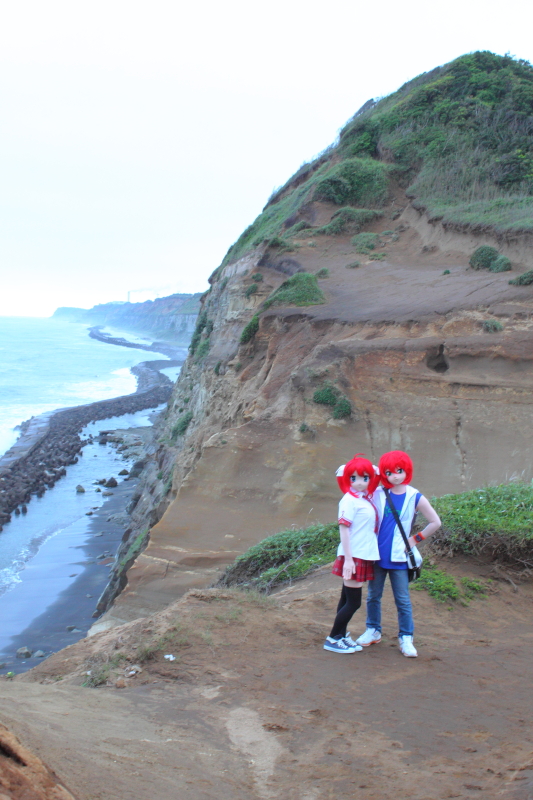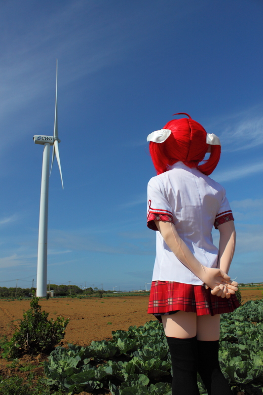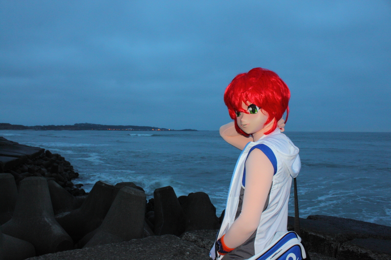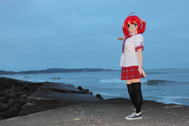 ![]() さてさて。 森のオフ会と銘打った貸別荘オフシリーズを、2015年5月に第5回を無事終了し。 その三週間後、今度は潮風香る海辺へと繰り出したのでした。 海辺でオフ会を開きたい。 これは私の10年来の夢でして。2002年頃、一時的に南関東に住むことになった私は、そのとき海辺近くのオフ会を構想していたのですが、日程がうまく 折り合い着かないまま、転勤で中部山岳地帯へ住まうことになってしまい。以来、海からは遠く離れた山や森の中でのオフ会がもっぱらだったのですが。 2013年に再び南関東へ引っ越してきて以来、関東沿岸を森羅さんらと現地調査を重ねて、よし海辺でもオフ会をやろう! と今回相成りました。 今回の参加者は、 TAKA、Lewin、つの、東鉄、森羅。 以上、5名。東鉄さんを除く他メンツは、これまでも現地調査で足を踏み入れたメンバーでして。今回は第一回目と言うことで、現地を知る少人数で、 手堅く(?)オフ会をやろうと、少数での開催でした。 ![]() ここは千葉県某所。 お昼頃、断崖上の展望台駐車場にメンバー集結。 そしてこの辺り、風が強いので、風車がいっぱい立っております。まずは、その近くへ行ってロケ撮影をば。 周辺はキャベツ畑が広がっていまして、近くで農作業をしているご夫婦が、到着した我々をぢぃーと見てる。キャベツ泥棒じゃ無かろうか?と見られてたかなー?(^^) 私、そちらへ歩み寄って、 「あ、すみません。この辺で風車をバックにコスプレの撮影をしたいもので」 と、お願いしたところ笑顔で「ええよ、ええよ」と了承いただきました。 ![]() つのさん撮影 ここは、以前森羅さんと私だけ来たことのあるスポットでしたので、残るお三方は風車のでかさに興奮気味(^^) 東鉄さん曰く「ああ、風車あるならアリシアさんを連れてきたのに・・・」 がびーん。そんなことすっかり忘れていました(^^; 実は当日、風がだいぶ強かったので、当初もくろんでいた海岸は波しぶきをもろにかぶってNGだろうということで、急遽予定を変更してこの風車に来たのでした。 東鉄さん、次回の折りはアリシアさんをよろしく! (今回に限らず、私、アリシアさんの撮影機会をこれまでも何度も逃してるんだよなぁ・・・) ![]() Lewinさん撮影 ![]() つのさん撮影 ![]() つのさん撮影 ![]() Lewinさん撮影 撮影始めてしばらくすると、先にご挨拶した農家のご夫婦が、遠くからチラチラこちらを見ています。 ミズーが歩み寄って「先ほどご挨拶させていただいた者です」と名乗ると、「いやーかわいい。一緒に撮らしてくれない?」となりまして。 奥様とミズ−、二人並んで記念撮影して参りました(^^) さて時刻が15時を廻った頃、着替えて近くの貸別荘へと向かいます。 森のオフ会を開催している貸別荘は、もうオーナーと10年来のおつきあいなのですが、今回は初めてのところなので要領勝手も違ってくるだろうと。 申請していた予定到着時刻(16時過ぎ)に急いで向かい、部屋へ荷物を降ろし。 日が暮れるまでにはまだもう少し時間があると、ちょこっと別のロケ地へと向かいました。 今度は断崖の近く、海を見下ろす撮影スポットです。 お昼頃は晴れていたんですが、この頃雲に覆われて、早くも薄暗くなっていました。 先にロケした「風車」はこの断崖の奥の方の台地上にあります。 ここは、過去にもミズーやナンシーがロケしている場所なのですが、写真にすると現地の高低感がちょっとわかりにくいかなと思い・・・ 手ぶれしてるけど、ちょっとはなれたところから俯瞰してみると、こんなとこで撮ってるとおわかりいただけるかと。 転落しないように、細心の注意が必要(いや、マジに) それでもって、崖のそばに立つ人より、離れてカメラを構えてる方が怖がって(^^;) 着ぐるみ:「まだ、全然行けるよ?」 カメラ: 「いや、もうダメ、もっとこっちに戻ってきて!」 崖の上でしばらく撮影してから、波打ち際へ降りていきます。既に日暮れの時刻。 遠く、街には灯がともり始めています。 この頃は風も止んでいて。あとは晴れてくれさえいれば、雄大なサンセットが拝めたのに。なかなか、良い天気に遭遇するのは難しいです。 翌日急用の出来たLewinさんとはここでお別れし、残る4人は晩ご飯&温泉へ。 刺身の盛り合わせに、あさりの炊き込みご飯セット 豚汁がムチャクチャうまかったですねー。 魚のアラとかでダシを取ってるのかもしれません。思い出しただけでよだれが・・・これを食べに行くだけでも行く価値はある! 天ぷらも美味しかったし、アサリの釜飯ご飯も良し良し。海の美味しいもの、たっぷり食べられてウハウハ。 と、食べてる頃、地震! 大きく揺れましたねぇ。小笠原近海でマグニチュード7.6でしたっけ。 「うわっ、やべえ!」 と思いましたね。お食事処、ほぼ海抜ゼロメートルですから。今、津波に来られたら地理感も無い土地の夜で一巻の終わり!!! だったけど、「津波の心配はありません」とニュースに出てきて、ほっと。 それと千葉の海辺、というとイメージ