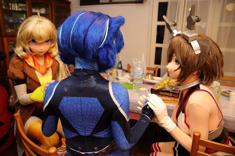 | 森のオフ会と銘打った貸別荘オフシリーズ第8回レポです。 貸別荘オフシリーズ第7回のレポートは転勤引越を間に挟んだこともあって、上梓が10ヶ月後と随分間が開いてしまいましたが・・・ 今回2017年10月ハロウィン間近頃の開催だった貸別荘オフシリーズ第8回のあと、今度は転職を検討・実施するという慌ただしさで(^^;) このオフ会のレポを今、2017年6月に書いています。8ヶ月後の上梓ということで前回よりほんのちょっぴり早くなっていますが(w やっぱり記憶が抜け落ちてるので、画像中心のレポになります。 いや、抜け落ちというか8回もプチオフを回を重ねて記憶がごっちゃになっている部分もあって、記憶が混乱しているというトコもありますが(^^;;) ともあれ、オフレポをスタートしたいと思います。 ![]() 今回の参加者は、 TAKA、零式型冥、カール4世、彩弧由貴、綾野はるまき、田代憂、どびーAXZチェンジ、JACK、Fe鉄、ジョバンニ、すらん、たまきゅう、 Lewin、さとけん、森羅、たろさ。 以上、16名(敬称略)です。 今回はけもの系で綾野はるまきさん、田代憂さんも参加というエポックメイキングもあり、新キャラデビューもありと人数の多さも相まって華やかでした。 皆さん到着がゆっくりめだったこともあって、着ぐるみさん達が登場したのは23時頃! 割とこのオフ会は早めに着ぐるみさんが登場するものですが、スロースタートで、その分時刻もam3時頃まで着ぐるみさん達が出ていたようです(私は2時過ぎでダウンして寝てしまって)。 Lewinさん持参のハロウィン・バルーンを前にむっちゃん登場。 (少なくとも)4カメに撮られてます(笑) 徐々に着ぐるみさん達が登場し始め、会場はカオス状態へと。 画像左のYangは今オフで初公開になる、たまきゅうさん装演のYang。RWBYのRubyの異母姉に当たる子です。 ![]() Yangについては翌日たっぷり屋外ロケをしておりますので。 こんな感じで、次回レポに乞うご期待。 そしてam0:40頃には着ぐるみさん達で大盛況。 Lewinさんの設営した黄ホリをバックにプチ撮影会を開始。 私もRubyに着替えて撮っていただくことに。 ![]() ![]() さとけんさん撮影 Fe鉄さん撮影 ニア・オートマタごっこ(w ![]() 彩弧さん撮影 この後、屋外テラスに出て、暗闇をバックにRubyを更に撮って貰いました。 ![]() ![]() 彩弧さん撮影 Rubyは黒を基調にした服に赤が縁取りされた姿なので、こうした暗闇に浮き立たせると面白いなと思ってるのですが、いかがでしょうか?(^^) とまあ、Rubyをたくさん撮っていただいたお陰で、時刻はam2時もとっくに過ぎて・・・草木も眠る丑三つ時。 ![]() キャアアアア〜! 謎な画像を彩弧さんに撮られ(w 私はもう眠くて、ふーらふら(^^; 布団に潜り込んで、明日のロケに備えるのでした。 next page |