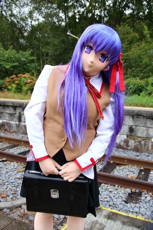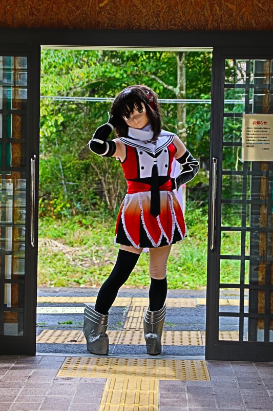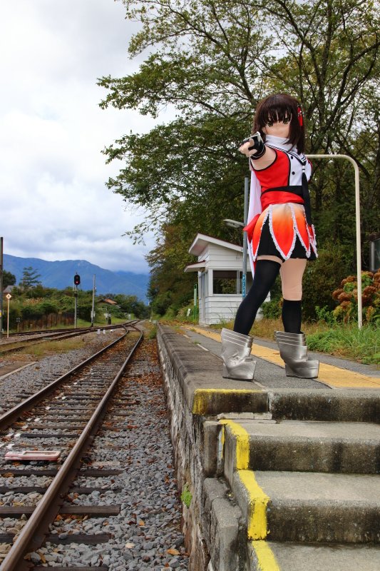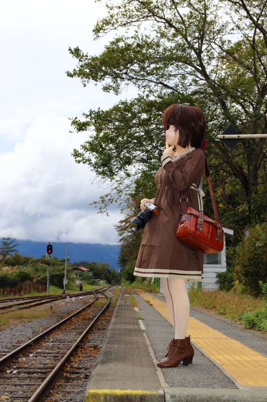 2日目! 今回初日から2日目夜にかけては雨の予報でしたが、びみょーに悪天候がずれ込んで朝になっても曇り、足下は雨上がりでぐしょぐしょなバッド・コンディション。 と言うわけで、この日のロケは足下がしっかりした(舗装された)無人駅でもっぱら執り行うことに。 この日、日中私は撮り方に専念していましたが、3グループに別れての入れ替わり立ち替わりの撮影をしていたので、取り損なってる娘さんも多かったです(^^; 毛ぐるみさん系がほとんど撮れてなかったなぁ・・・ 「グループで別れていた」のもあったけど、毛ぐるみさん方は人気集中、複数カメラに終始取り巻かれていて、私が割り込める隙が無かった(w