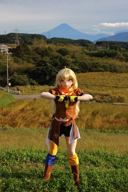 ![]() JACKさん撮影 カール4世さん撮影 かくしてお昼ご飯を破産でのロケ中はずっと、曇り空だったのですが、15時頃になって少し雲が切れてきました。 晩ご飯のBBQ準備まであと1時間程、皆さんまったりしているこのとき、Yangだけ出ていましたので、思い切って新しい撮影スポットにYangを連れてロケ撮影してきました。 じゃん! じゃじゃん! うりゃー! と、言うわけでYangお姉ちゃん登場(^^) カッコいいし、ナイスバディなのだわん!(^^) Far to the backward Mt.Fuji 撮影場所は富士山撮影では有名なスポット・葛窪中央道トンネルのすぐ近くです。 ロケ撮影している間にどんどん雲も切れてきて、「あ、このまま晴れて行ってくれれば中央道の夜景と富士山のシルエットをバックに撮れるかも! と期待したんですが、そうは問屋がおろさない(w このYangを撮影した、ほんの30分ばかりの間だけ上空の雲が切れて、しばらくしたらまたうっすら雲がかかってきてしまって残念。 とまれ、一瞬だけでも秋晴れっぽい画像も撮れたので私は満足です(^^) この撮影スポットで着ぐるみを撮影したのはYangが第一号! 私はロケ撮影の選定まではしていましたけど、まだ自分自身はここで撮って貰っていません。 (その後、イチかバチかでセルフロケを狙ったんですが、やはり富士山撮影のスポットだけあって、人が何人か居て断念となりましたが) いつかここで私も撮って貰いたいなぁ(^^) 陽も落ちて、そろそろ晩ご飯のBBQの頃。 ![]() ジョバンニさん撮影 2日目夜の部へと向かうのでした。 next page |