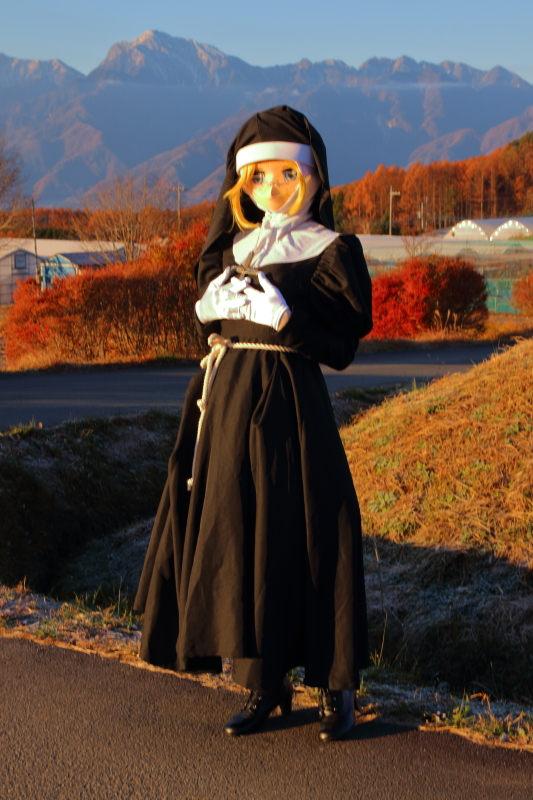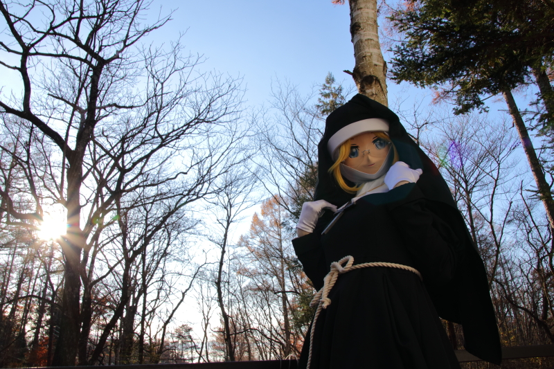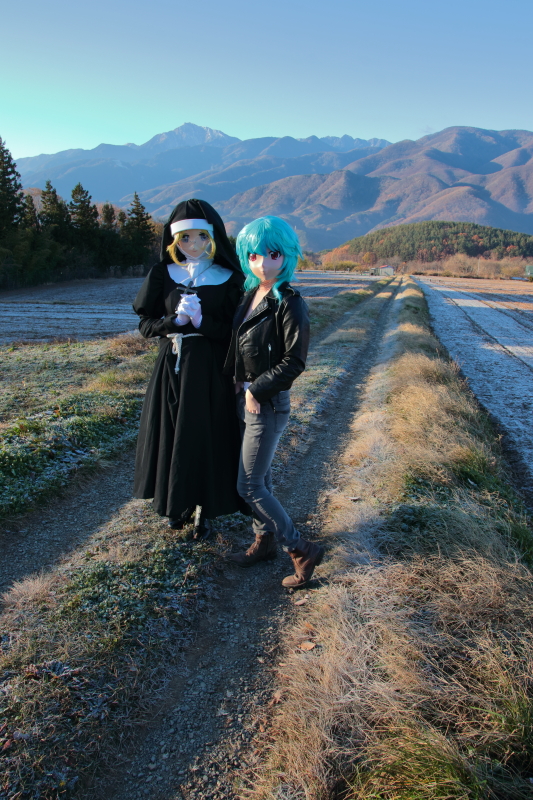| 朝もはよからロケ撮影〜! ( ↑朝霞の中、富士山がちっちゃく ) 朝6時頃に起き出して、富士山の見えるロケ地へ向かいました。 日が昇ってくるにつれて富士山が朝霞に薄れてしまうので、こうした早い時間に行かないとダメなんですよね。せっかくの休日、朝ゆっくり寝たいとこですが(^^; この朝は特に風も無かったので霞が多めで、富士山を写し込むのは難しかったです。 ![]() 早めに富士山を諦めて、別の地点へ移動。こちらは甲斐駒ヶ岳と南アルプスをバックに大遠景が写せる場所。 ![]() ちょっと日本離れしたスケールの撮影が出来るとこで、私のお気に入り撮影スポットでもあります(^^) 出発から約一時間半後の8:30頃にヒミツ基地へ帰投。ヒミツ基地ベランダでロケツアーの締め。 この間、他にもめいめいロケツアーに進発していますが、こちらでは私の撮影中心に掲載していきます。 そしてロケツアー第二段は、嵐牙さんと彩弧さんに、ウチのメイアを連れていって貰いました。 着替え終えて発進準備OK。 と、椅子に座っていたら、いったい何処を撮ってるんですか(^^; ![]() ![]() 今回、ホワイトメイアで行きまーす。ホワイトメイアは以前も一度やっているのですけど、画像も少なかったので今回再トライ。 かつ、ダウンコートはロングに代わっています。 そして近所の無人駅へ10:20頃移動。駅前ロータリーに隣接した美術館バックに嵐牙さんに撮影してもらいました。 ![]() そして駅で彩弧さんに撮っていただいた画像です。 ![]() ![]() 終了〜。11:10頃撤収。 これにて午前の撮影終了。 この後、お昼を近所のピザ屋さんで戴いて、戻ってきたところで再びロケ撮影に向かいます。 奇跡的に午後、霞が薄れてきて富士山が見やすくなってきました。慌ててまた富士山背景に撮影へとすっ飛んでいってロケ撮影! でもカメラを構えている間にみるみる雲がかかってきちゃって。山を撮るのはなかなかなかなかに難しいです。 それで今度は小川のある林で撮影。 実際にはもっと画像撮っていますので、見たい方はオーナーのチェルシーさんにせがんでください(^^) で、宿に帰ってきたらナンシー幕張が(^^) 2017年に嵐牙さんのとこへお嫁に行ったナンシー、1年ぶりの再開でした。 やっぱいいなぁ・・・(^^) ただ、いかんせんウチも娘が増えちゃって、せっかくの娘ながら、なかなか表に出してあげる機会が作れないもので嵐牙さんのとこへ移籍したのです。 またやりたいなぁと未練は残しつつも、嵐牙さんとこで頑張って欲しいものです(^^) こちら、カール4世さんの撮影。とっても印象的でナイス! 黒の服に金色の光は合ってますよね。気付かなかった・・・・ ![]() そしてその夜。 前夜、いつもと違うメイアが登場して、この夜はいつもと違う灯里ちゃんが登場するです。 ![]() next page |