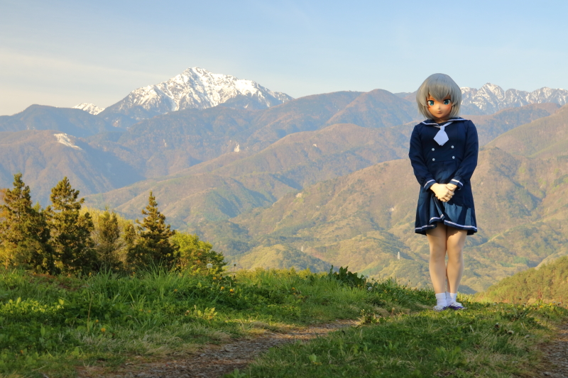 南アルプス甲斐駒ヶ岳をバックに雄大な山の景観をバックに撮影。