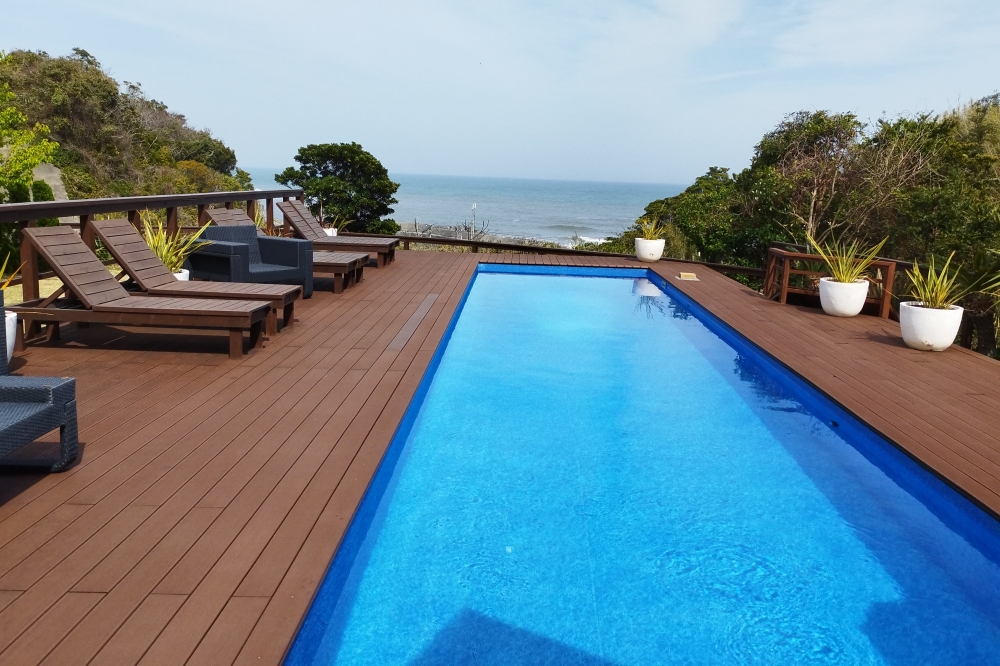 そして、季節はまだ3月なのでプールへ入るのはちょっとまだ冷たくて無理だろうなあと思って入らなかったのですが。当貸別荘にはプールの他屋外風呂もありまして。そちらは43℃にまで加温出来ます! 入りました!