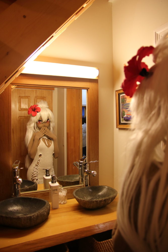 鏡の前でチェックしてるとこを激撮!