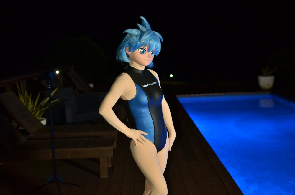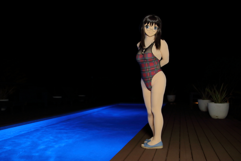 夜は、GUNHEADさん提供のスイムスーツをお借りして撮影に臨みました。