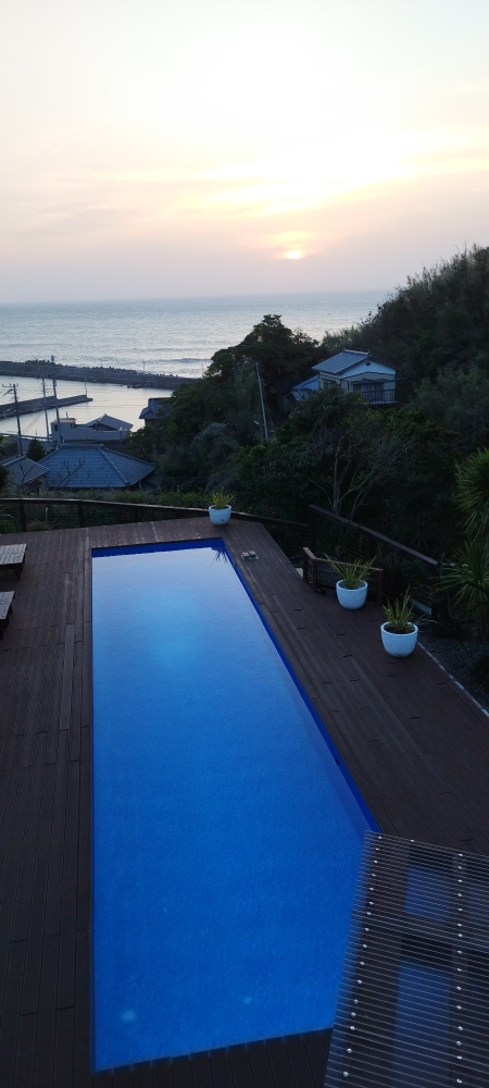 この貸別荘、この季節は水平線から日が昇るとこを室内から見えた・・・はずが、起きたときはもう7時頃で、すっかり日の出時間は過ぎており(汗) 絶好のシチュエーションをみすみす逃してしまった我らでしたが(w