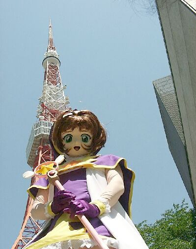 「東京タワーって、すっごく高いね。 はい、ポーズ。小狼君も一緒にね。」 「お、おい、そんなにくっつくなって・・・」