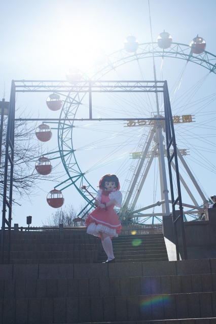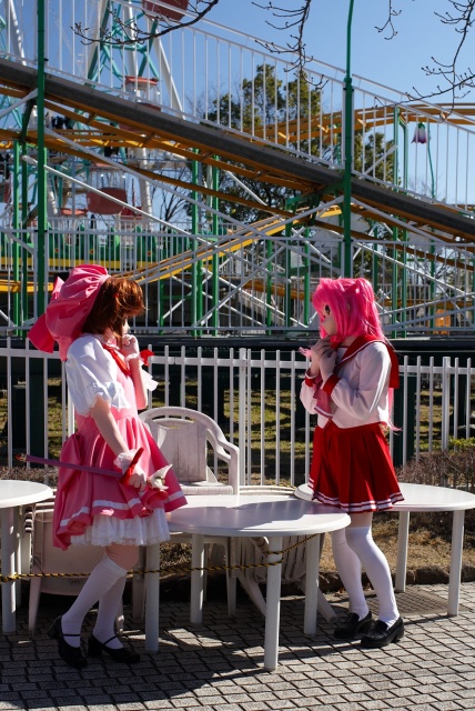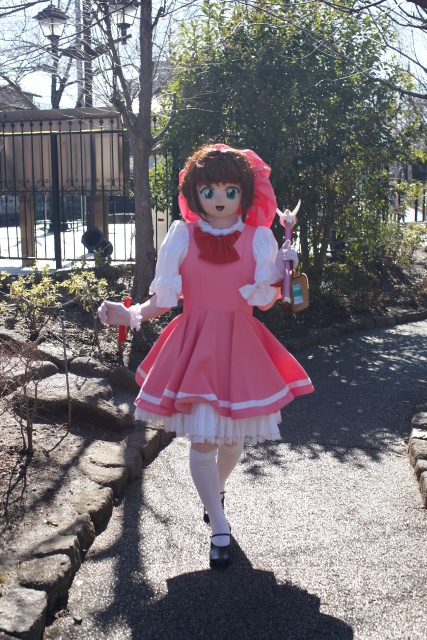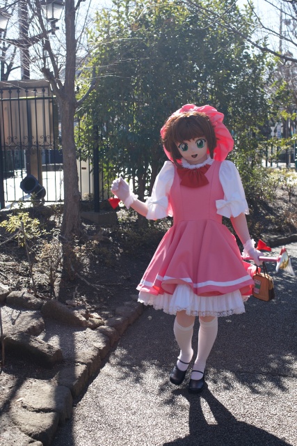 あらかわ遊園のコスイベントでは更衣室は園内になく、100m程離れた施設にあります。そこから遊歩道を歩いて遊園地に入るわけですが、このイベントの面白いところは、