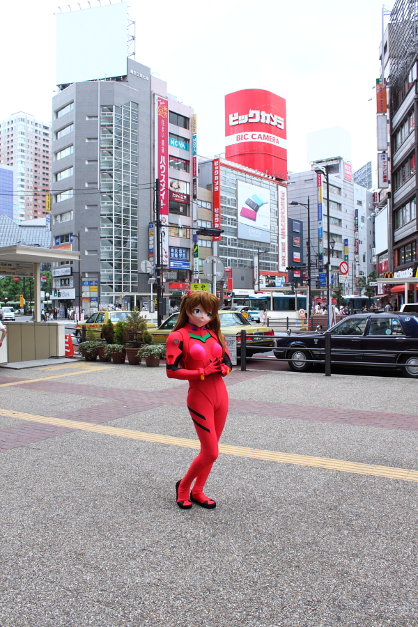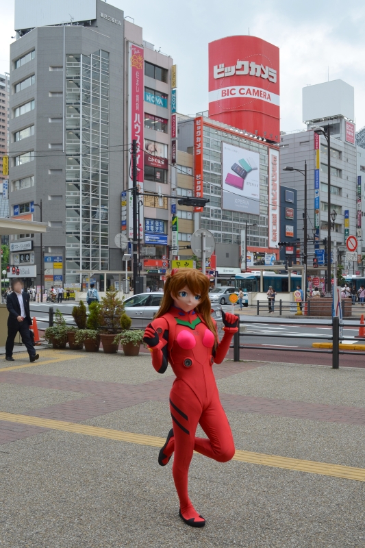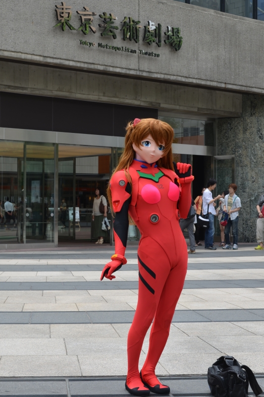 梅雨本番の、ジトジト暑い最中ではありましたが、池袋の駅前・街中に繰り出せるコスプレイベントがあると聞いて、行って参りました。![]() 駅前で、偶然行き会わせた着ぐるみさん達御一行と記念撮影。撮影はねりけしさんです。 天気予報では前日まで、「この日は雨」の予報だったので、行くのを諦めていたんです。 ところが朝起きたら、快晴、とは言え無くとも、雲が切れ切れになって、日も差しているじゃないですか! 「これは、行かねば!」 と、一人で飛び出し、最悪写真無し、グリーティングで遊んでくるだけ、の覚悟でいたのですが、ねりけしさん、☆J&E☆さん、座長さん、夢繰さんらの一行と偶然にも街中で巡り会いまして。ねりけしさん、☆J&E☆さんに何枚か撮っていただきました。 コスプレの会場は、池袋駅西前の広場と、池袋西口公園がメインで。こちらは、☆J&E☆さんに駅前広場で撮っていただいた写真です。 ![]() あはは。アニメキャラがフツーの生活空間にいる、アンマッチング(^^) 駅前は、やはり大勢の人が行き交う場所ですから、アスカは通行の妨げにならない場所にいて、求められるままに写真を撮られたり、握手したりしていました。 でも、そのうちなにやら警察官が、二人、三人、四人と広場に姿を現しだしたのです。池袋西口に、異様に警察官の密度が上昇していく! 「え? 私らをマーク(警戒)してる? 汗汗汗!」 そのうち、職質でも始められたらどうしようと、気もそぞろになりましたが、そのうち西口広場の片隅に、民主党のボックスカーが乗り付けてきまして。駅前で、選挙演説が始まったのです。なにやら党首の海江田さんも来て演説するとか。それで、警察が警戒に当たり始めたのかと、合点がいきましたが。 しかし、政界の大物がいて、警察が警戒に当たっている傍らで、「覆面をした人物が、大物政治家の演説を遠巻きに、右へ左へと挙動不審な動きをしている」と目されてはたまりません。 李下で冠を正さず。 アスカは、そそくさと池袋駅前を後にしたのでした。 それにしても、人が大勢通る駅前に、もっといたかったなぁと思うのですが・・・・演説長くて、結局二度と駅前に立てませんでした(w 池袋駅西口からちょっと歩いたところに池袋西口公園があります。ねりけしさんに、公園と道路に面した街路樹沿いの散歩を撮っていただきました。 ![]() ![]() ![]() ![]() 上手ですよねー。アスカが歩いてる「動」の雰囲気伝わってきます。 こちらは☆J&E☆さんの撮影。 ![]() 噴水前で撮影していると、ちっちゃな子が、構って欲しげによって参りました(^^) 毎度のことですが、肖像権とかあるので、イベントで家族連れやお子さんと遊んでいる写真はup出来ませんけど、ここでも、子供達や、通行する一般の方々と楽しいひとときを過ごして参りました。 ![]() 公園に隣接する劇場。☆J&E☆さん撮影。 公園に隣接する反対側が、いろいろ特徴的なオブジェがあって、写真に向いていたと思うけど。そうと気付いたのは、終わってから。 今回、写真にとって貰うことを想定せずに突撃して会場入りしたので、下調べもしていませんでしたから(^^;) このコスプレイベントのメイン会場はこの公園と駅前広場でしたが、他にも池袋西口公園から更衣室のある中学校までの道路も「会場」扱いで写真撮影も「通行の妨げにならないように」可能だったんです。そちらの写真は今回ありませんけれど・・・片側二車線の道路に幅広の歩道がありまして。歩道をのんびり歩いてもきました。 しかし、道路端でアニキャラがたむろして、それを目で追った運転手が自動車事故を起こしたらシャレにならんだろうなと、詮無きことも考えましたが。実際、自動車に乗っている人達が、こちらに注意を引かれているのをたびたび見かけました(^^;) 今回、梅雨の最中でしたので、2時間もすると、プラグスーツ表面まで汗が染み出してきましたので、そこで終了。 もうちょっと涼しい季節に「また」やってくれたらと思いました。着ぐるみ姿で、普通に街中を歩けるのは、ほんに魅力的です。 ただ、もし次回があって、参加される方がいましたら、一点注意。 メイン会場の池袋西口公園と、更衣室のある中学校が800m近く離れていまして。その間を、てくてく歩いていかなければいけません。着ぐるみにとっては結構な移動距離です。 途中、何度か横断歩道を渡らないといけないし、中学校付近はガードレールのない道を歩いていくので、自動車・自転車には十分に注意が必要です。 この点は、くれぐれもお気を付け下さい。 (^^) 最後に、私が持っていったカメラで☆J&E☆さんに撮影して貰った写真を。 こちらはRAWデータで撮ったので、後で私が現像して仕上げています。 |