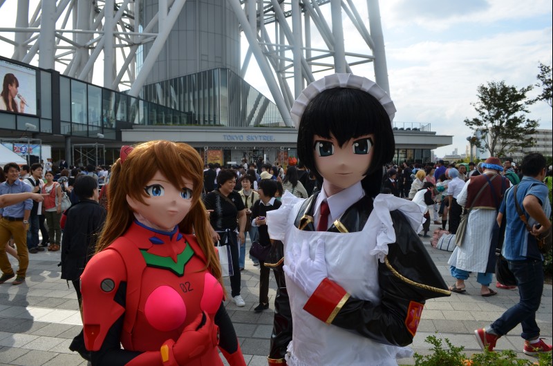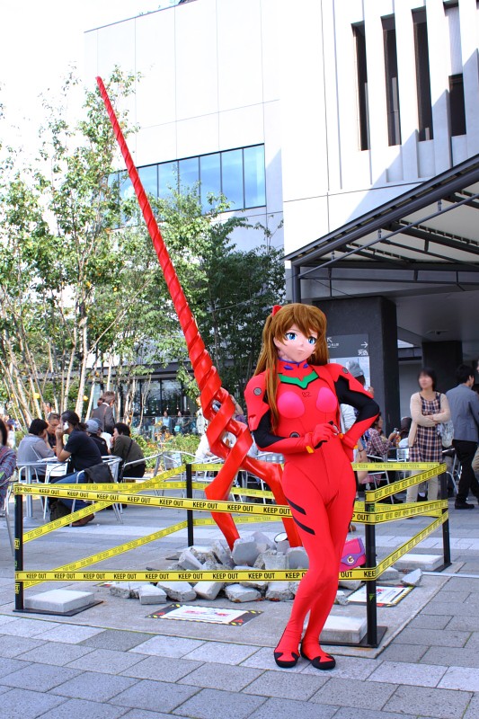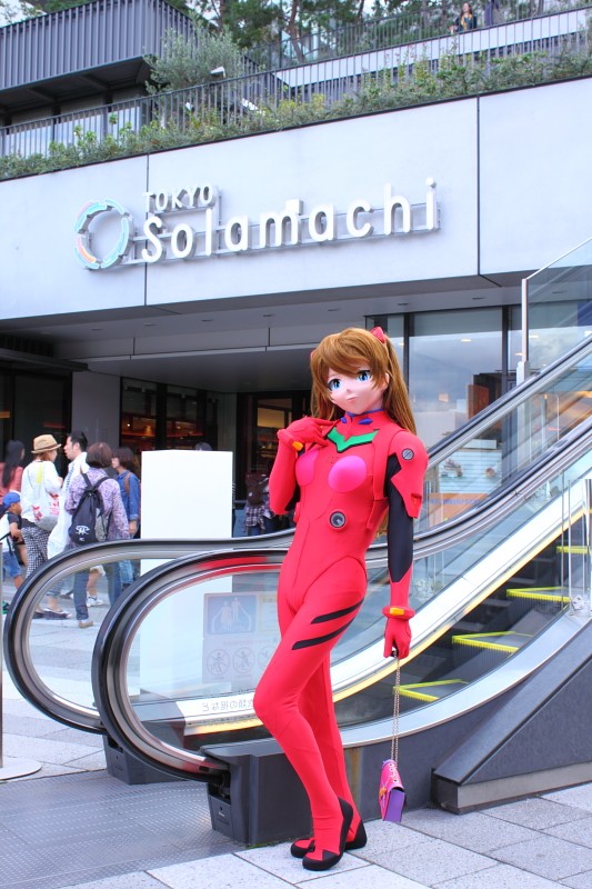 | さて、前日は中野コスプレフェスタに参加したのですが、この日は東京スカイツリータウンで行われたコスイベントに参加してきました。 二日連チャンでコスイベントに参加するという、贅沢は実に久しぶりではありましたが(^^) この日は(意外にも)コスイベントに行くのが初めてというLewinさんをサポートをまずメインにしてまいりました。 現地に到着して、まずはLewinさんと、「素」のまま、現地下見。 初めてのイベント会場では、着替える前に現地のおおよその地図を脳内に把握しておくのが肝要と。 ただ、今回のコスイベントは、東京スカイツリータウン内もコスプレOKではあったのですが、いかんせん中は大混雑。 観光客でごった返している中を、着ぐるみさんで歩き回るのは、チト好ましくないと、もっぱら外を中心に廻る作戦で行くことに。 まずは、Lewinさんちのコノエさんに登場いただき、私は撮影しつつ、エスコート。 ![]() ![]() 背後の円柱群が、結構良いアクセントな場所で。 ただし、私が着替えてアスカで行ったときは、人(観光客+レイヤー)でごったがえして、こんなにすっきりした感じには撮れませんでしたけど(^^;) ![]() 偏光レンズがあったら、ガラスの向こう側にあるスカイツリーの鉄骨群が、もっとくっきり浮かび上がって面白かったんじゃないかと。 この数年来、偏光レンズが欲しいなあと思いつつ、ずっと課題なままになっているTAKAではあります(汗) 。スカイツリーをバックに構える、コノエさん。 スカイツリー高すぎ! まともに写真に収めるには四苦八苦で、このとき私は仰向けに寝転がりながら撮ってました(^^;) ![]() ちなみに、今回アスカはスカイツリーをバックにした写真を撮って貰っていませんでした。 アスカを出した頃には、曇ってきてしまっていて。・・・はううう・・・・。 まずは、コノエさんを一通り撮った頃に、☆J&E☆さんと合流。 コノエさんも慣れてきたであろうと、私もアスカに着替えて、撮って貰いました。 スカイツリータウンで、ごく普通にエスカレーターに乗ろうとしているアスカです。 ![]() 前日の中野でのコスイベントといい、この日といい、連日プラグスーツで外を出歩いていると、コスプレしている(着ぐるみをしている)感覚が希薄になってきたような。 ドキドキ感が薄れて、普段着で、外を出歩いているのと大差ない感覚になってきますね。こう言ってはゼイタクに過ぎるんでしょうが、街中を着ぐるみで歩く有り難みが薄れてしまうかのようです(w いやいや(^^;) でも、「あ、アスカだ!」とか、「やべ、ホンモノがいるよ」とか。あちこちから声を掛けていただくのは、やっぱりわくわくしますよー。 この日コノエさんでコスイベントデビューしたLewinさんからも「やっぱり、知名度高いですよねえ」と、アスカに掛かる声に感心しておられました。 そして、スカイツリータウンには、なにかとモニュメントがあれこれとあったんですが・・・・。 何故、ここにこんなものが!? ![]() アスカの天敵(!) ロンギヌスの槍が、突き刺さってました(爆) もうちょっと、近寄りたかったけど。エヴァを知る関係者がいて、「アスカなら、どーぞ槍にもっと近寄ってください!」と言ってくれないものかと、しばらく「keepout」のテープの周りをうろついていましたが <ヤメナサイ! ![]() ハロウィンが近いので、なにやらお立ち台めいたものもありました。 ![]() スカイツリータウンの喧噪の中で、こうして普通に観光してるようにこの場に立っていられるのは、それだけで楽しいモンです(^^) さ、更衣室の時間もあるし、そろそろひきあげましょうか、というタイミングで京一さんら他の着ぐるみさん御一行と出会いまして、最後に記念撮影。 ![]() 今回、スカイツリーをバックにしたアスカの写真がなかったので、機会が有れば、またアスカでトライしてみたいイベントです。 でも、難しいかな。まだ、真新しい観光地で人も多いですからね・・・ |