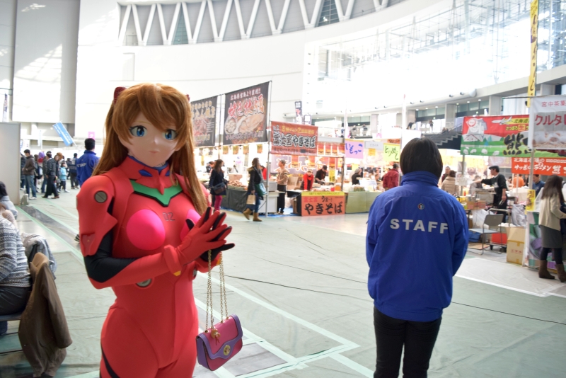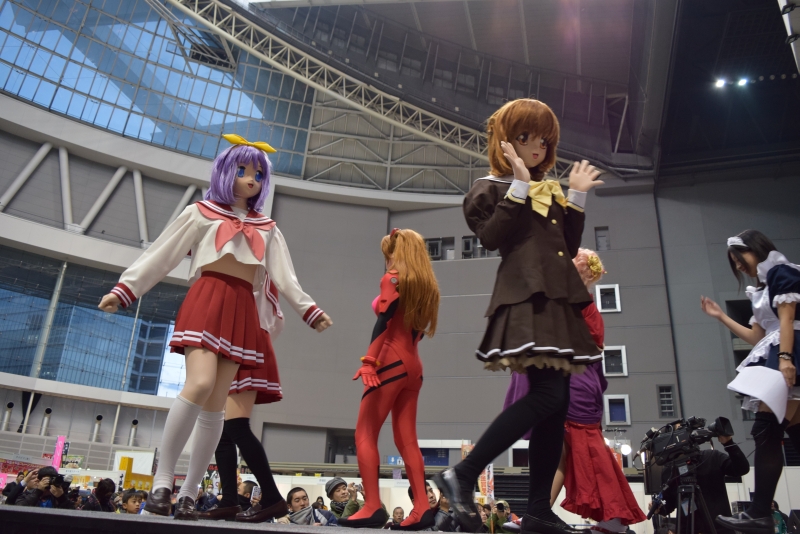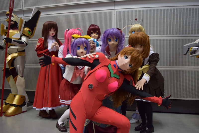 ![]() つばさ283号さん撮影 NOCHIさんにお誘いを受けて、1/10,11に埼玉スーパーアリーナで開催されたイベントに、アスカで参加してきました。 初日が「第一回クールジャパンinさいたまスーパーアリーナ」 二日目が「2015さいたまスーパーアリーナエンターテイメント・エキスポ」 とのこと。 主催団体さんが違うのですが、NOCHIさんに連絡を取った共催団体(アキバランドツアーズさん)が両方に参加しているということで。両方行っていきました。 初日が、経産省が関わってる、世界へクールジャパンを発信しよう!的な、 二日目が(たぶん)埼玉の公官庁が関わって、新しい産業振興イベント的な、 TAKAが聞きかじった、感じたとこを四捨五入すると、そういったとこだったのですが。 ともかくも、NOCHIさんが動員した埼玉の在住(を中心とした)着ぐるみさん達が、お祭りの盛り上げに一翼を担って参りました。 ![]() 「世界へ発信」とうたうイベントだけに、世界中のコスプレイヤーからビデオレターが会場で流され。 アメリカの着ぐるみさんからもメッセージが届いていました・・・どうやってコンタクト取ったんだろ(汗) ![]() 映る米国着ぐるみ達を見あげるJapan着ぐるみ達。 ぼぉとさん撮影。 ![]() 「アスカ、一緒に撮らせて」と会場でご一緒したクールな衣装な方。後で知ったのですが、気象予報士にして女子プロレスラーの春日萌花さんでした。 昔はTAKAもプロレスに超熱くなってた人でして。そっち方面で話が出来たら楽しいだろうなあ。 ・・・って、あの、見る方で、ですからね。ヒンズースクワットを一〇〇回もやれば、翌日歩けませんから(w 会場のスーパーアリーナは開閉式ドームスタジアム。天井が高い高い。 ![]() ねこことらさん撮影 二日目は、産業振興の色が濃いので・・・なんか、会場は屋台村の様相を呈していました(汗) 着るより、地方の名産を食べて廻りたかった気も(w 焼きそばとか、焼き牡蠣とか、会場は美味しそうなにおいが充満していまして。 不思議と、面をかぶってると食べ物のにおいがよく分かるようになるんですよ。なんでだろ。 ![]() ときおり、お店の前でチラシを持ったりして、気まぐれお手伝いしたりとか。 ![]() つばさ283号さん撮影 アスカは未成年なのですが・・・なんかビール売り場にも引き込まれ。 ![]() キャンペーンガールのお姉さん達がノリノリで。 「ほら、アスカもこれ持って!」と、スチールまで持たしたりとか、アスカで遊んでました(笑) ![]() ねこことらさん撮影 ![]() 二日目終盤に差し掛かった頃は、この日参加したコズプレイヤーがステージに上がって、ファッションショーみたいにランウエイを廻らせてもらいました。 ![]() ![]() ![]() つばさ283号さん撮影 ランウエイ終わって、参加者全員、舞台裏に再度揃って記念撮影。 ![]() 主催者側に声をかけられて、お互い初めて顔合わせた人達が多かったのですが、舞台裏、写真を撮ったり撮られたりと、和気藹々に交流してました。 海外のレイヤーさんも何人か混じっていて、結構会話に英会話が飛び交っていました。セーラー服おじさんも流ちょうに英語で会話されてましたよ。 ![]() ![]() 舞台裏で撮影を邪魔して廻る赤いワルい奴(w はしゃぐはしゃぐ(^^) この日、全く偶然だったのですけど、エヴァ三体も参加されていまして。 チルドレン一人にエヴァ三体を背後に揃えてゼータクに撮らせていただきました。 ![]() うう、初めてロンギヌスの槍を手にしたよー! 嬉しかったよー! (槍はアスカのトラウマな気がするけど・・・・) 時間も無かったのであまりご一緒できなかったのが悔やまれますけど、いつかまた弐号機さんとペアの絡みでご一緒させていただきたいものです。 ![]() 今回、イベントの盛り上げ役的にお呼ばれされたイベントでしたけど、色々楽しい出会いがありました。 次の機会もあれば、また参加したいですね。 |