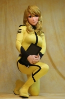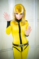 (制作記録) '15.5月中旬に面製作に着手、7月中旬の約7週間で完成。私の面製作では、初代シンジ面の6週間に次ぐ短期録で作っています。前作のキュア・ピーチが7ヶ月(こちらは最長記録)かかってしまい、ノイローゼになるくらい、面作りがうまくいかず四苦八苦したのに対して、自分でも驚くような短納期製作でした。おそらく、ピーチを作る前、面製作にほぼ3年近いブランクが有ったのに対し、森雪はピーチ完成から三ヶ月あまりで着手して、「製作の感覚があった」差なんでしょうね。 ただ初回作は大きめに作ろうと意識しすぎたせいで若干バランスが悪かったので、2016年にリメイクしました。2016MarkUとした面がそれですが、よりアニメの顔に近づけられたと思います。如何でしょうか。 衣装は発注して作ってもらっていますが、生地にマット感を出したいことを相談したところ、2way生地二枚重ねで作るというチャレンジをしてもらいました。結果、期待通りな見た目感が出たのと、あと2枚にした分、日差しがあまり身体に届かないようで、真夏のイベントでも、それほど暑さを感じませんね。黄色が太陽光線を反射しているのもあるかもしれませんが。 ベルトは幅広革ベルトにライオンボード等を使って自作しました。ホルスターは戦闘中はしているみたいですけど、どうしようかな・・・。 |